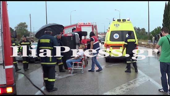 Πέντε τραυματίες, οι δύο σοβαρά, είναι ο απολογισμός τροχαίου ατυχήματος πριν από λίγο, έξω από τον Πύργο.