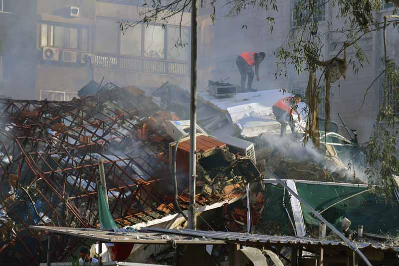 Καπνοί και χάος στην καρδιά της Δαμασκού. Παράρτημα της ιρανικής Πρεσβείας στη Συρία έχει καταρρεύσει μετά από ισραηλινή αεροπορική επίθεση, με νεκρούς ηγετικά στελέχη των Φρουρών της Επανάστασης αλλά και αμάχους. Πρόκειται για το πιο σημαντικό πλήγμα εναντίον τους μετά το θάνατο του Κασέμ Σολεϊμανί.