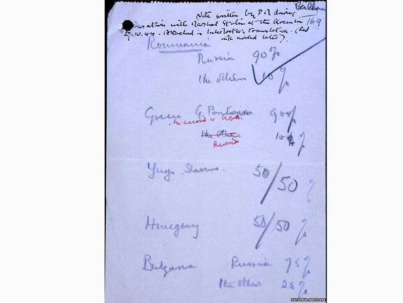Φέτος συμπληρώνονται 79 χρόνια από την 4η Διάσκεψη της Μόσχας, κατά την οποία οι Ιωσήφ Στάλιν και Γουίνστον Τσώρτσιλ χώρισαν την Ευρώπη κρατώντας σημειώσεις πάνω σε μια χαρτοπετσέτα!