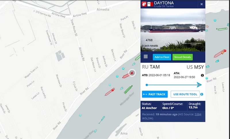 Το δεξαμενόπλοιο Daytona, ιδιοκτησίας της ελληνικής εταιρείας TMS Tankers Ltd και ναυλωμένο από την ολλανδική εταιρεία εμπορίας ενέργειας και εμπορευμάτων Vitol, η οποία εδρεύει στη Γενεύη, εμποδίστηκε να εκφορτώσει τα καύσιμά του στη Νέα Ορλεάνη, καθώς απέπλευσε από τη ρωσική χερσόνησο του Ταμάν, στη Μαύρη Θάλασσα.