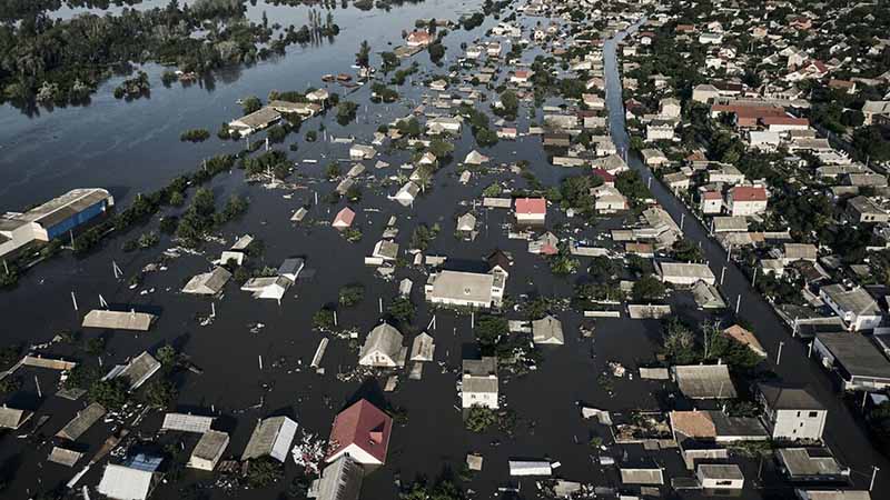 Η καταστροφή στον ποταμό Δνείπερο προκάλεσε πλημμύρα σε ένα μεγάλο μέρος της γραμμής του μετώπου στην περιοχή. Οι εθελοντές οδηγούν τους πολίτες στον σιδηροδρομικό σταθμό, όπου κάποιοι επιβιβάζονται στο λεωφορείο για τη γειτονική πόλη Μικολάιφ. Υπάρχει επίσης ένα τρένο που περιμένει τους διασωθέντες. Πολλοί ωστόσο προτιμούν να παραμείνουν στη Χερσώνα και στα γειτονικά χωριά, ελπίζοντας ότι η στάθμη του νερού θα υποχωρήσει.