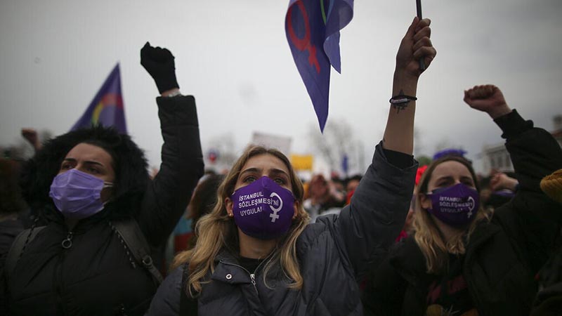 Οι διαδηλωτές κρατούσαν πανό με συνθήματα όπως «Θα μαχόμαστε μέχρι να αποκτήσουμε αυτό που θέλουμε», απαιτώντας από την κυβέρνηση του προέδρου Ρετζέπ Ταγίπ Ερντογάν να «επιστρέψει» στη Σύμβαση της Κωνσταντινούπολης για την προστασία των γυναικών έναντι της βίας.
