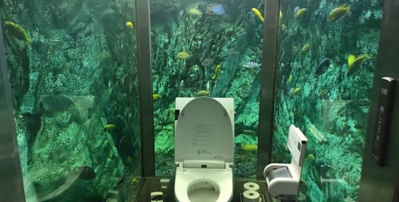 Μια ιαπωνική καφετέρια διαγράφει ιδιαίτερη πορεία στο χώρο της εστίασης χάρη στην περίεργη τουαλέτα που διαθέτει που βρίσκεται μέσα σε ένα τεράστιο ενυδρείο.