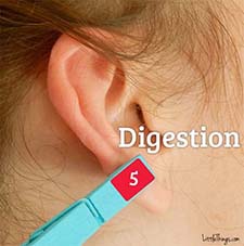 (5) Ακριβώς πάνω από τον λοβό του αυτιού είναι ένα σημείο που συνδέεται με την πέψη. Ασκώντας πίεση πάνω του μπορεί να ανακουφίσει από πεπτικές διαταραχές και στομαχικά προβλήματα. Και άμα έχετε συχνά τέτοιου είδους προβλήματα, μπορείτε να χρησιμοποιείτε αυτή τη μέθοδο εκ των προτέρων προληπτικά.