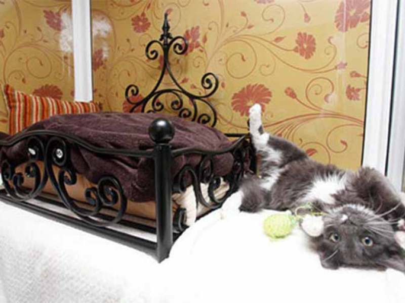 Το ξενοδοχείο διαθέτει 6 ξεχωριστά θερμαινόμενα δωμάτια, κάθε ένα εκ των οποίων είναι διαφορετικά διακοσμημένο. Όλα διαθέτουν το δικό τους, τελευταίας τεχνολογίας, σύστημα ήχου ώστε οι γάτες να μπορούν να ακούν τη μουσική που θα επιλέξουν οι ιδιοκτήτες τους. Έξω από το παράθυρο του κάθε δωματίου υπάρχουν κλουβιά πουλιών για να κρατάνε το ενδιαφέρον των φιλοξενούμενων.