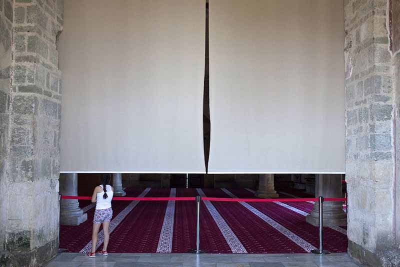 Η Αγία Σοφία Τραπεζούντας, όπως και της Κωνσταντινούπολης, φημίζεται για τις μοναδικές της εικονογραφίες. Παρόμοιοι μηχανισμοί με παραβάν και κουρτίνες για να τις καλύψουν είχαν ήδη τοποθετηθεί από το 2013, όταν ο ναός έπαψε να είναι μουσείο και έγινε τζαμί, καθώς η προσωπογραφία απαγορεύεται στο σουνιτικό Ισλάμ.