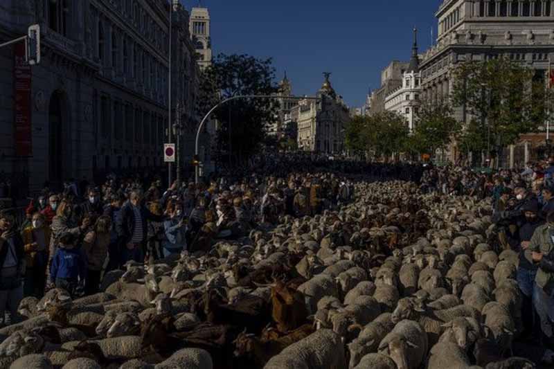 Με πρόβατα ήχους από τα κουδούνια τους γέμισαν σήμερα, Κυριακή (24/10) οι δρόμοι της Μαδρίτης στην Ισπανία, καθώς οι βοσκοί οδηγούσαν τα κοπάδια τους μέσα από το κέντρο της ισπανικής πρωτεύουσας, ακολουθώντας αρχαίους δρόμους μετακίνησης των αιγοπροβάτων για τον χειμώνα.
