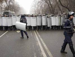 Δημοσιογράφοι του Γαλλικού Πρακτορείου είπαν ότι είδαν αστυνομικούς να ρίχνουν δακρυγόνα και βομβίδες κρότου-λάμψης για να διαλύσουν ένα πλήθος 5.000 ανθρώπων. «Κυβέρνηση παραιτήσου» και «Έξω ο γέρος» [σ.σ. ο Νουρσουλτάν Ναζαρμπάγεφ], φώναζαν οι συγκεντρωμένοι.