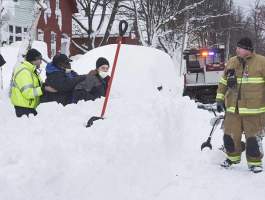 Πυροσβέστες, αστυνομικοί και τραυματιοφορείς ελέγχουν αυτοκίνητα θαμμένα στο χιόνι και ανασύρουν νεκρούς αλλά και άτομα που έχουν εγκλωβιστεί για ώρες και έχουν ανάγκη φροντίδας.