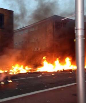 γερανό που βρισκόταν στην κορυφή ενός κτιρίου και προσέκρουσε. Ο γερανός τώρα, σύμφωνα με το BBC, κρέμεται στο πλάι του κτιρίου.