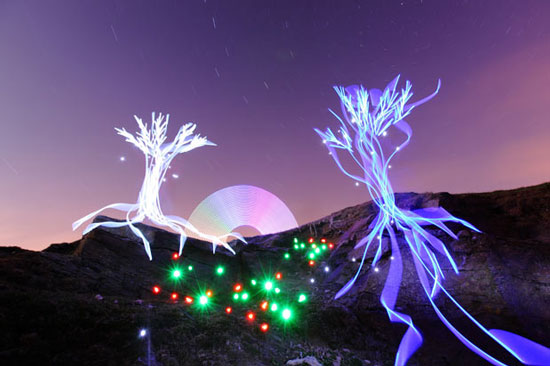 Ουσιαστικά φτιάχνει ένα γκράφιτι στο σκοτάδι χρησιμοποιώντας το φως. Μάλιστα όπως ο ίδιος δηλώνει απέκτησε την έμπνευσή του φωτογραφίζοντας το φεγγάρι σε ένα ελληνικό νησί. Είναι λίγο δύσκολο να καταλάβουμε πως ακριβώς παράγει το μτελικό αποτέλεσμα αλλά εύκολο να εντυπωσιαστούμε από αυτό.