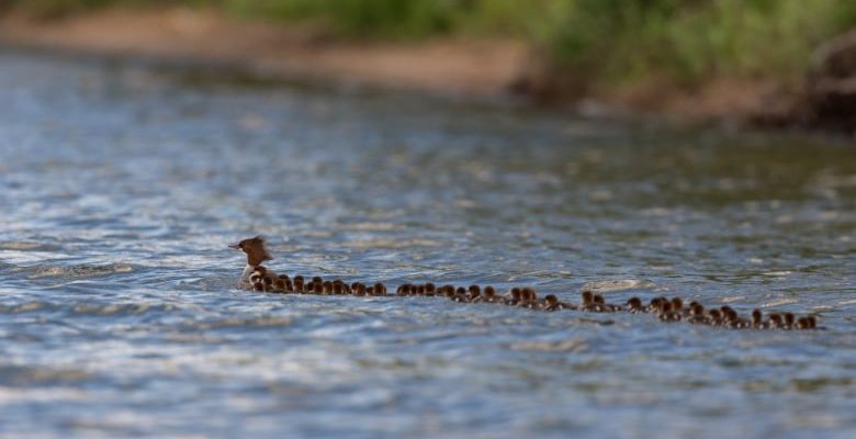 Το ασυνήθιστο θέαμα μιας μητέρας πάπιας που ακολουθείται από 76 παπάκια έχει εντυπωσιάσει τους χρήστες του διαδικτύου, μετά από τις ερασιτεχνικές φωτογραφίες που δημοσίευσε ο φωτογράφος Brent Cizek στο λογαριασμό του στο Instagram.