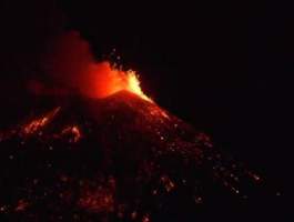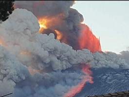 Λάβα και πετρώματα εκτοξεύονται από τον νοτιοανατολικό κρατήρα του ηφαιστείου. Η κατευθύνεται προς την κοιλάδα «Mπόβε», στην οποία δεν υπάρχουν κατοικημένες περιοχές.