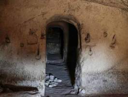 Τους τελευταίους δύο μήνες, οι αρχαιολόγοι έχουν ανασκάψει μια περίτεχνη αυλή 350 τετραγωνικών μέτρων στην είσοδο του σπηλαίου, γεμάτη με περίπλοκα πέτρινα γλυπτά, ψηλές καμάρες, μωσαϊκό δάπεδο και τα ερείπια ενός καταστήματος όπου οι προσκυνητές μπορεί να νοίκιαζαν λάμπες λαδιού για να φωτίσουν τον δρόμο τους μέσα στη σπηλιά για τις προσευχές τους.