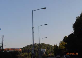 Αυτές οι κολώνες φωτισμού βρίσκονται στο μεσοδιάστημα μεταζύ του 19ου και 20ου χιλ. της ΕΟ Πύργου - Κυπαρισσίας, στο Κάτω Σαμικό Ηλείας, αλλά δεν έχουν ανάψει ποτέ, παρότι φαίνεται να τοποθετήθηκαν με σκοπό να φωτίζουν την εθνική οδό τις