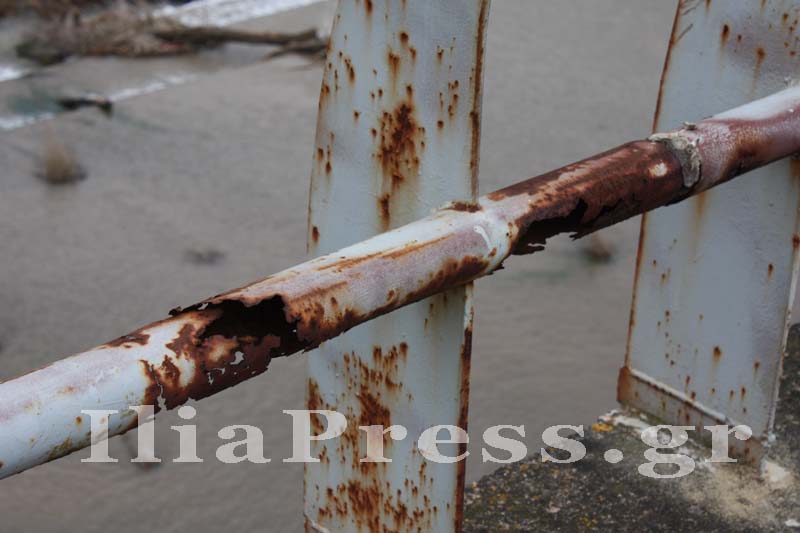 Τα σιδερένια προστατευτικά κάγκελα στην κουπαστή, δείχνουν πως έχουν χρόνια να συντηρηθούν με μίνιο και χρώμα.