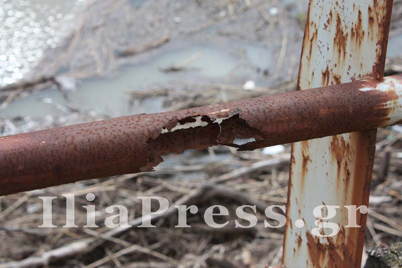 Ολόκληρα σιδερένια προστατευτικά κομμάτια έχουν σαπίσει από την σκουριά και έχουν πέσει.