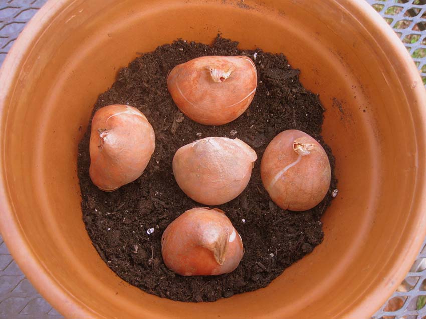 Αν έχουμε αγοράσει μεγάλη ποικιλία από βολβούς, τους χωρίζουμε έτσι ώστε οι νάνες τουλίπες να φυτευτούν σε ρηχές γλάστρες και οι ψηλές σε πιο βαθιές. Γεμίζουμε σχεδόν μέχρι τη μέση τη γλάστρα μας μόνο με ελαφρύ χώμα. Αποφεύγουμε το χώμα από τον κήπο μας γιατί περιέχει επιβλαβή στοιχεία για τους ευαίσθητους βολβούς. Φυτεύουμε όσους βολβούς θέλουμε κοντά -κοντά, αλλά χωρίς να ακουμπούν μεταξύ τους. Προσθέτουμε κι άλλο χώμα φροντίζοντας ο βολβός να είναι καλά καλυμμένος και η μύτη να εξέχει ελαφρώς. Ένα μυστικό: οι μυτούλες δεν θα πρέπει να εξέχουν από το χείλος της γλάστρας γιατί μετά το φυτό δεν θα μπορεί να στηρίζεται αρκετά. Αν ετοιμάσουμε πολλές γλάστρες, μια καλή ιδέα είναι να κολλήσουμε πάνω τους ταμπελάκια με την ημερομηνία φύτευσης.