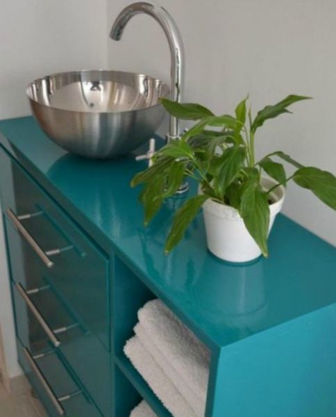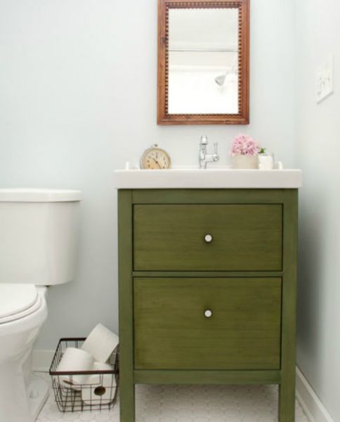 Αν έχετε σκοπό να κάνετε ανακαίνιση στην κουζίνα σας ή έχετε στην αποθήκη σας κάποια παλιά ντουλάπια κουζίνας, χρησιμοποιήστε τα για το μπάνιο σας κάνοντάς τους μια μικρή αναβάθμιση. Βάψτε τα σε μια όμορφη απόχρωση που σας αρέσει και χρησιμοποιήστε τα στο μπάνιο σας.