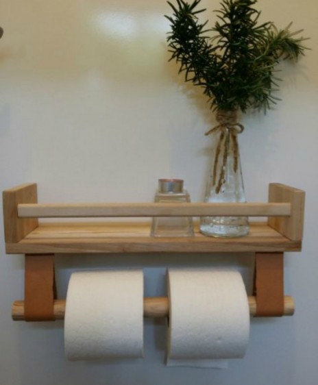 Βάλτε στο ξύλινο ράφι σας δερμάτινα χερούλια και περάστε μέσα από εκεί ένα μικρό ξύλινο κοντάρι στο οποίο θα στηρίζετε τα χαρτιά υγείας. Αυτή η μικρή λεπτομέρεια θα προσθέσει έξτρα πόντους στιλ στο μπάνιο σας.