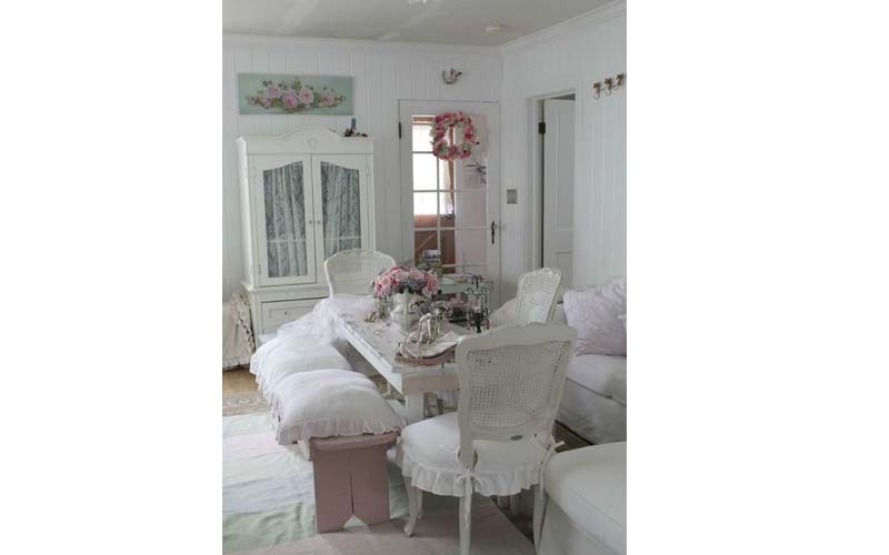Τα χρώματα που ανήκουν σε αυτή τη διακόσμηση είναι τα παστέλ και το λευκό.