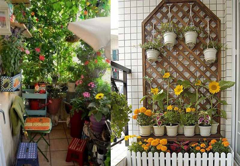 Λουλούδια παντού! Στις γλάστρες, στο κάγκελο του μπαλκονιού, κρεμαστά από το ταβάνι, πάνω στα τραπεζάκια, και το μπαλκόνι(μικρό ή μεγάλο) γίνεται κήπος μες στην πόλη!