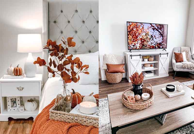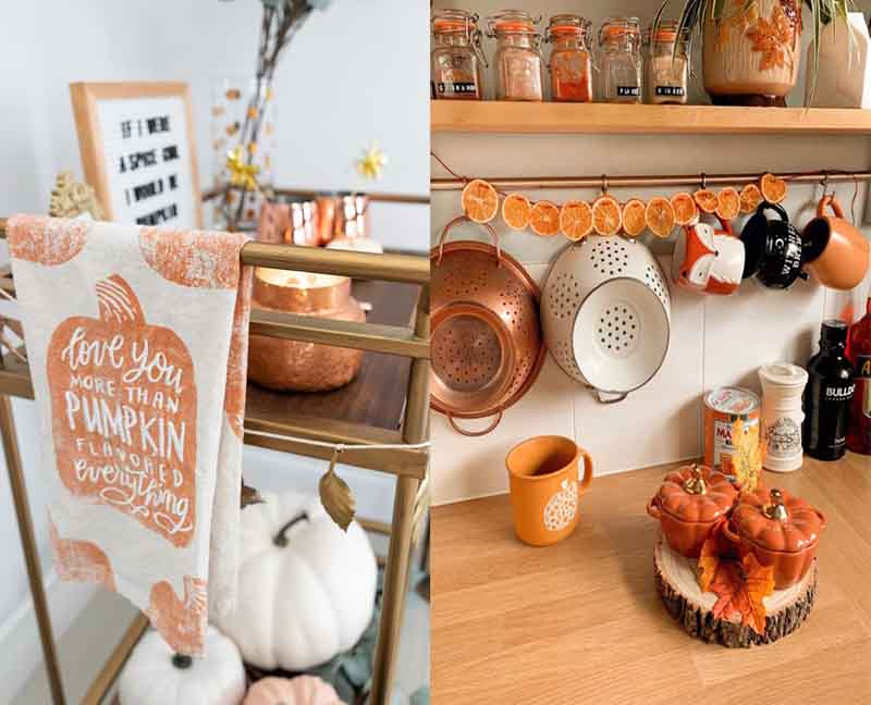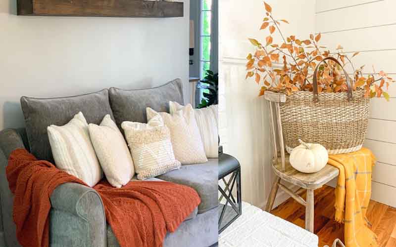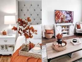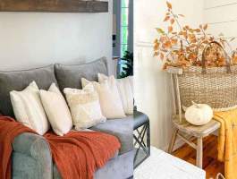 Δυο καφέ άδεια βαζάκια, πορτοκαλί καλύμματα για τα μαξιλαράκια του καναπέ, μια μικρή κολοκύθα (όχι απαραίτητα φυσική) σε έναν δίσκο με δυο φθινοπωρινά κλαδιά και το Φθινόπωρο βρίσκεται μέσα στο σπίτι μας.