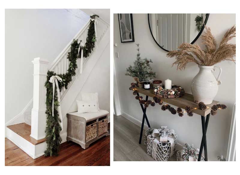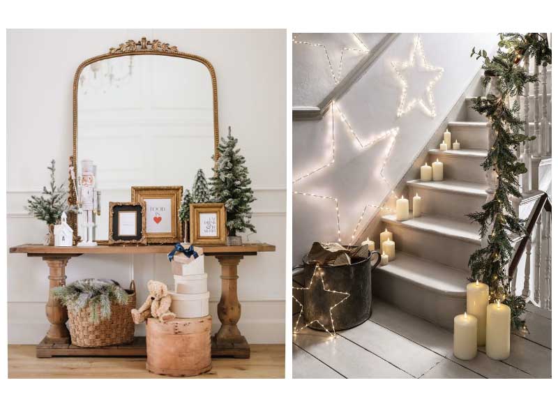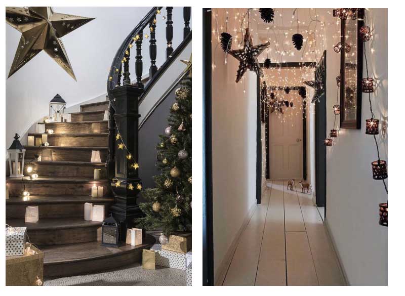 Σκάλες και χολ φορτωμένα με στολίδια ή πιο μινιμάλ μας δίνουν μια εικόνα για το τι κρύβει το χριστουγεννιάτικο σαλόνι μας.