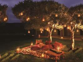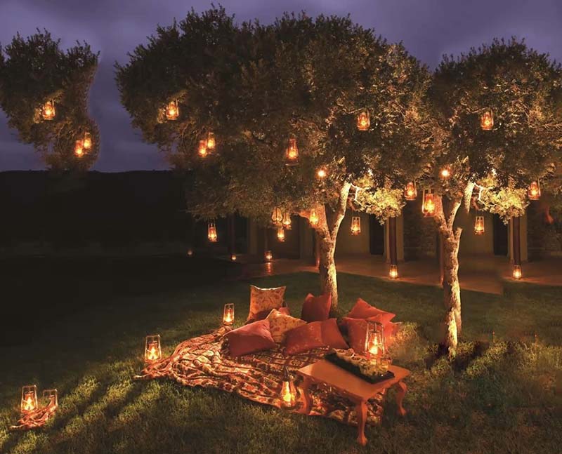 Την ατμόσφαιρα του καλοκαιριού ολοκληρώνει ο ξεχωριστός φωτισμός του.