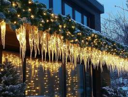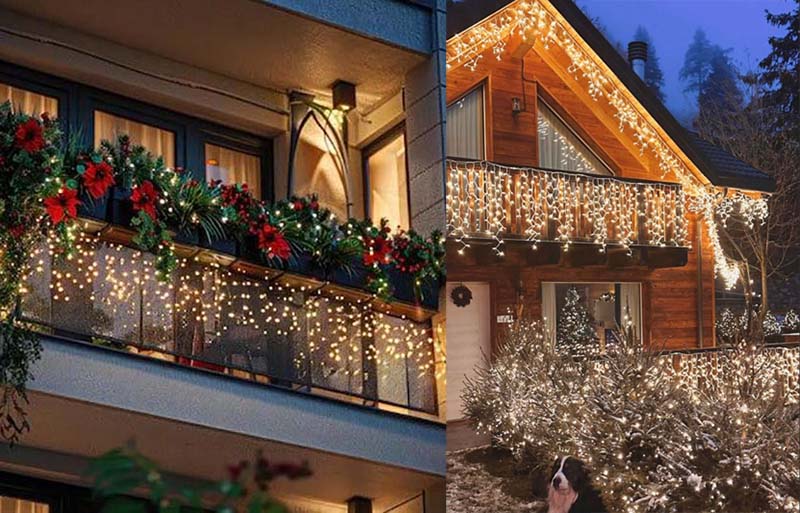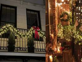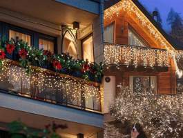 Λαμπάκια στα κάγκελα, στα φυτά, παντού — γιατί τα Χριστούγεννα τα φώτα δεν είναι ποτέ αρκετά. Και η φαντασία δεν εξαντλείται ποτέ: ακόμα και λαμπάκια «σταλακτίτες» κάνουν την ομορφιά να… στάζει!