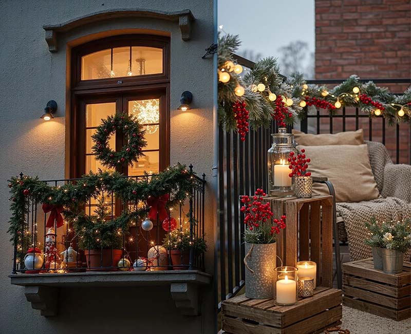 Η χριστουγεννιάτικη διακόσμηση δεν μένει μόνο μέσα στο σπίτι. Το μπαλκόνι ζητάει τη στιγμή του!