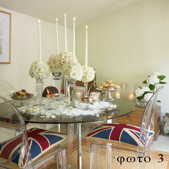 Μια πολύ δημοφιλής ιδέα στο εξωτερικό είναι να στολίσετε ολόκληρο το τραπέζι με ψεύτικο χιόνι ή πέταλα από λουλούδια (φωτο 3).