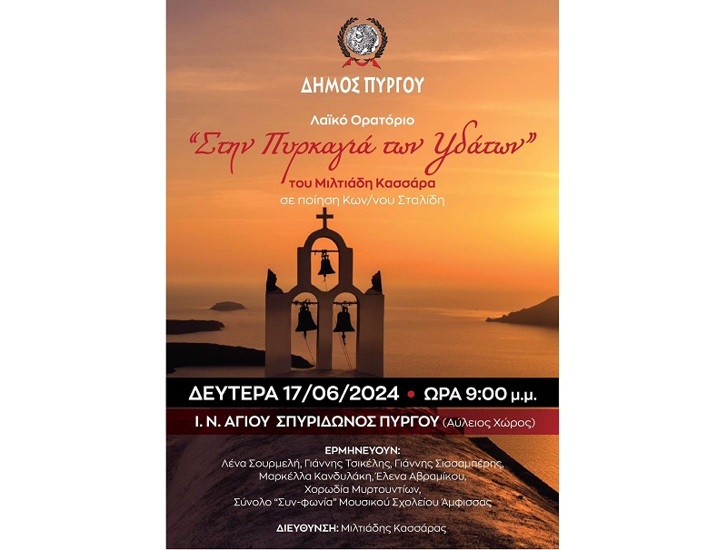 Μια ξεχωριστή εκδήλωση υπό την αιγίδα του Δήμου Πύργου τη Δευτέρα στον προαύλιο χώρο του Ιερού Ναού του Αγίου Σπυρίδωνος