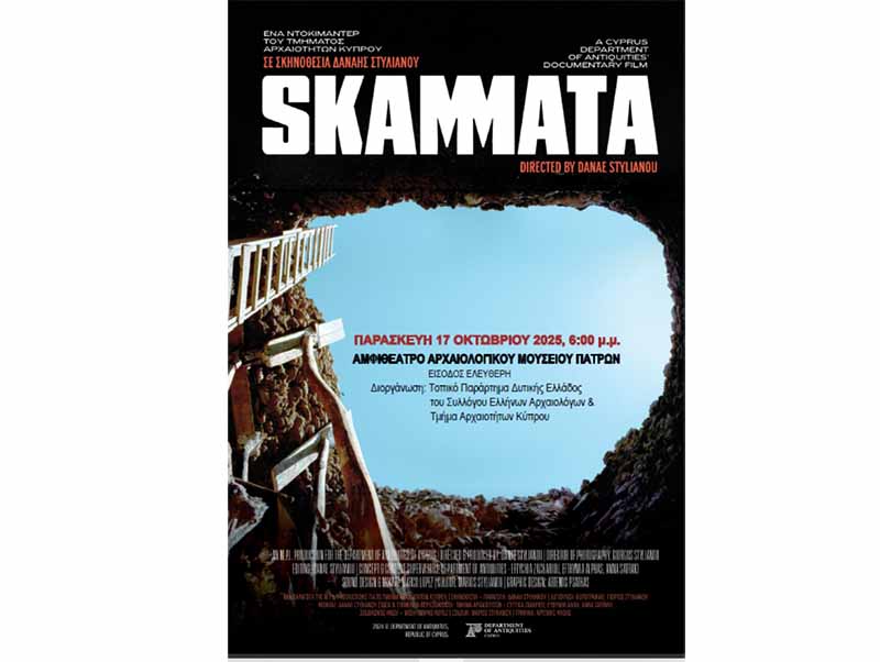 Με μεγάλη χαρά το Τοπικό Παράρτημα Δυτικής Ελλάδας του Συλλόγου Ελλήνων Αρχαιολόγων και το Τμήμα Αρχαιοτήτων Κύπρου σας προσκαλούν στην προβολή του μοναδικού ντοκιμαντέρ«Σκάμματα», το οποίο πραγματεύεται την τύχη της κυπριακής αρχαιολογίας κατά το πραξικόπημα και την τουρκική εισβολή το 1974.