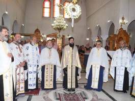 ραμονή της εορτής τελέσθηκε ο Μέγας Πανηγυρικός Εσπερινός μετ’ αρτοκλασιών και Θείου Κηρύγματος υπό του Ιεροκήρυκος της Ιεράς Μητροπόλεώς μας Πανοσιολογιοτάτου Αρχιμανδρίτου π. Φιλαρέτου Σπανοπούλου, συνεπικουρούμενου υπό των Αιδ. π. Χαραλάμπου Δέρβου, π. Ανδρέου Μπουγιουκλή, π. Αγγέλου Πανάγαρη, π. Αναστασίου Τσαμαδού, π. Νικολάου Κατσηδήμα, π. Θωμά Βαρβαρήγου, π. Διονυσίου Σπεντζάρη και π. Γεωργίου Χαρδαβέλα. Ακολούθησε η λιτάνευση της σεπτής εικόνας στους δρόμους του Μικρασιατικού αυτού Δημοτικού Διαμερίσματος.