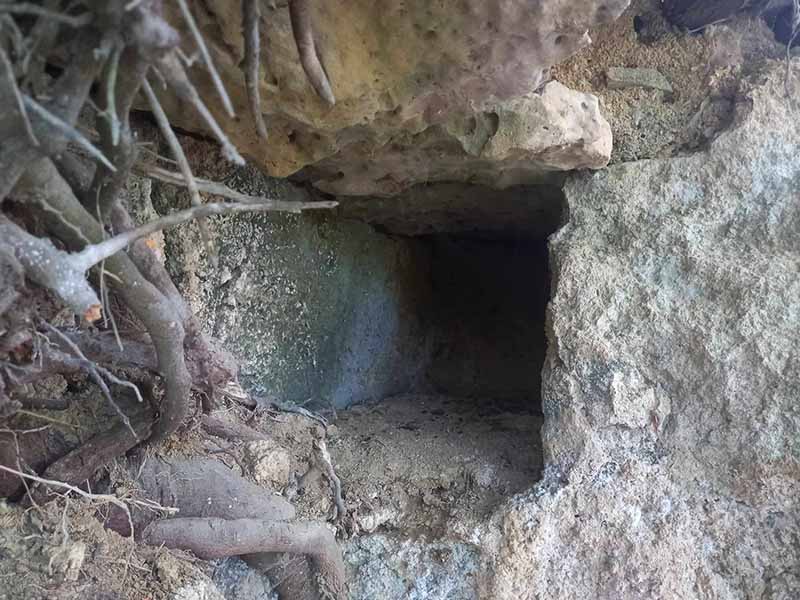 Ειδικότερα, σε απόκρημνο σημείο πυκνής δενδρώδης βλάστησης, στα όρια του εν λόγω ιστορικού οικισμού, εντοπίστηκε κιβωτιόσχημος τάφος μήκους περίπου 1,5 m. Σε σχέση με την αρχιτεκτονική του τάφου, ο τάφος είναι σκαμμένος σε μαλακό βράχο και φέρει εσωτερική επένδυση από λίθινες πλάκες, ενώ το σχήμα του είναι ορθογώνιο. Σύμφωνα με πληροφορίες ντόπιων ο τάφος ήρθε στο φως κατά το παρελθόν ύστερα από εκδήλωση μικρού κατολισθητικού φαινομένου ως απόρροια ελλιπούς ευστάθειας των πρανών του εδάφους της περιοχής. Υποστηρίζεται ακόμη ότι, κατά το παρελθόν είχαν εντοπιστεί ανθρώπινα οστά στο σημείο του τάφου.