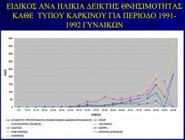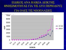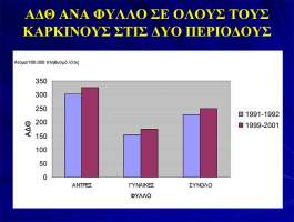 • Ένα άλλο στοιχείο που προκύπτει από την ανάλυση είναι ότι η επιμέρους διάγνωση των νεοπλασιών διαφέρει ουσιαστικά σε ορισμένους καρκίνους όπως π.χ. ο καρκίνος του ήπατος αναφέρεται σαν δεύτερη αιτία θανάτου από κακοήθη νεοπλασίες και στις δυο περιόδους.