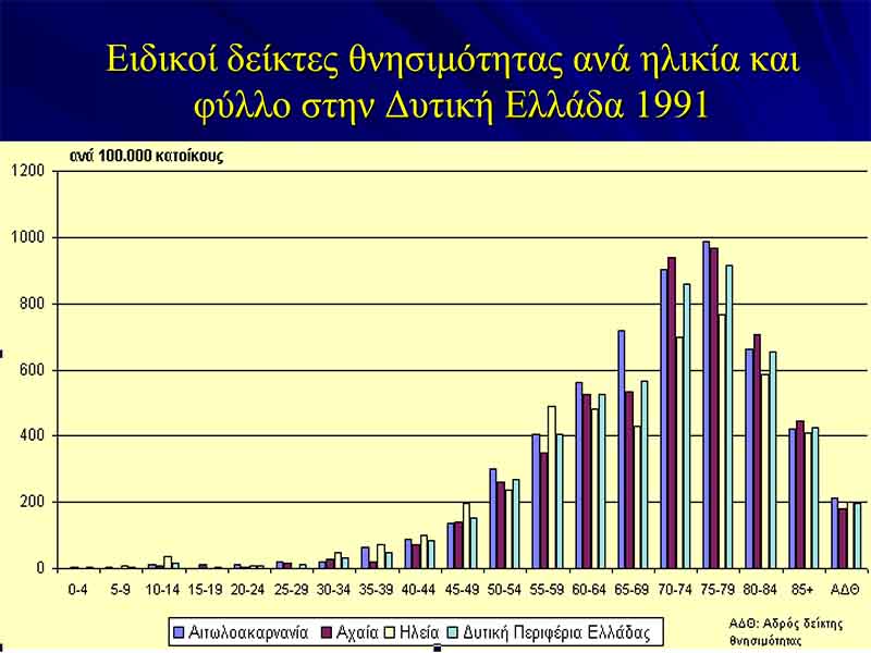 • Η ηλικία από την οποία αρχίζει να αυξάνει η θνησιμότητα είναι εκείνη των 50 ετών .