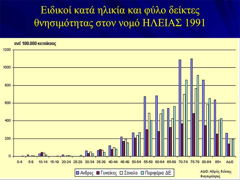 • Ανάλυση των στοιχείων με υπολογισμό διαφόρων γενικών και ειδικών δεικτών θνησιμότητας